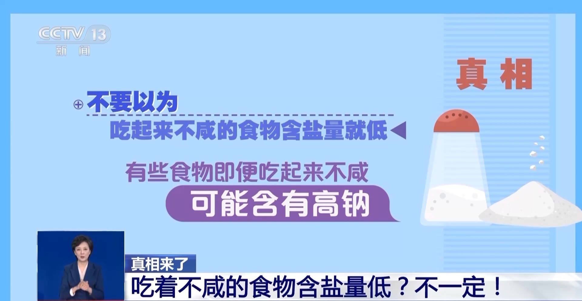 rrrr真相:不要以为吃起来不咸的食物含盐量就低。有些食物即便吃起来不咸,也可能含有高钠。